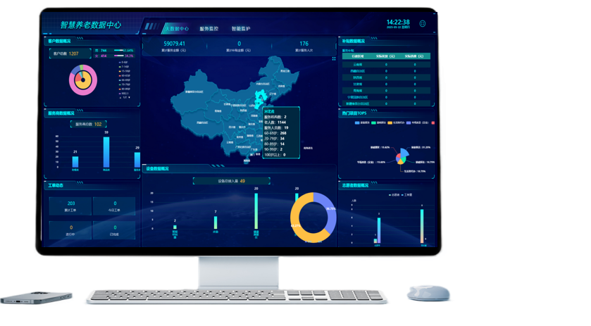 作为养老服务的 “中枢大脑”,是整个产品体系的核心指挥与管理载体。该平台承接各类智能硬件的数据分析、预警推送、服务调度等功能,可实现对老年人健康数据、生活状态、安全风险的实时监测与管理,同时为养老机构、社区、家属提供可视化的管理界面与服务对接渠道,是链接各类硬件产品与养老服务的核心枢纽。